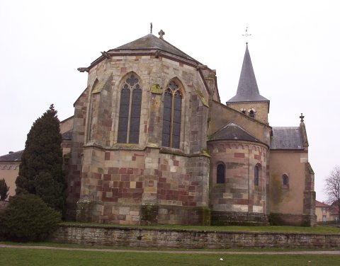 Depuis le bas Moyen Âge, l'édifice subit plusieurs transformations. Au XIVe siècle, on détruisit l'abside romane, dont subsiste l'arc principal, pour la remplacer par un chœur gothique à cinq pans. On ouvrit de grandes baies flamboyantes dans le mur du bas-côté nord, et l'on construisit la chapelle de Notre-Dame de Bon Renom1. Une voûte d'ogives couvrit l'entrée du chœur ; chapiteaux et clefs de voûte représentent des anges, des feuillages et des bourgeois de l'époque. A la fin du XVIIe siècle, on retailla les piliers en colonnes.Plusieurs aménagements intérieurs méritent qu'on s'y arrête. Près de la porte de la sacristie se trouvent les restes d'un sépulcre du XIVe siècle. Au fond du bas-côté sud, un reliquaire montre l'Annonciation, l'Adoration des Mages, le Couronnement de la Vierge et le Christ en gloire entouré de St Pierre, St Paul, St Jean Baptiste et de St Jean l'Evangéliste. C'est un chef-d'œuvre de l'école lorraine du XIVe siècle.