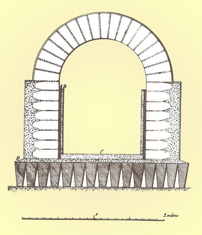La conduite est couverte d'une voûte en plein cintre17 dont les claveaux sont assez grossièrement taillés. La hauteur du conduit, de 1,80 m entre radier et intrados, permettait le passage d'un homme pour l'entretien18. A cet effet, on avait ménagé des regards d'accès19 carrés tous les 20 ou 30 m20.