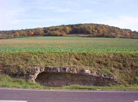 Les opérations archéologiques ont maintes fois permis d'observer cet aqueduc. On peut le faire aujourd'hui encore à l'endroit où la D 12 l'a coupé entre Gorze et Novéant9. Il est construit comme la plupart des ouvrages de ce genre et, malgré certaines adaptations aux terrain, ses caractéristiques sont les mêmes sur tout son cours10.