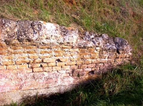 Le long de la D 12, entre Gorze et Novéant, l'appareil comprend des assises de briques. Il s'agit peut-être d'une réfection. - 15. Ce ciment a été observé sur 0,92 m de haut à Gorze, et sur 1,06 m à Novéant. Dans cette commune, les observations de V. Simon en 1838 donnent une épaisseur de 6 cm, chiffre que l'on retrouve le long de la D 12. A Ancy, aux lieux-dits Pornottes et Fermes, l'enduit ne monte qu'à 0,55 m de haut mais a 8 cm d'épaisseur.