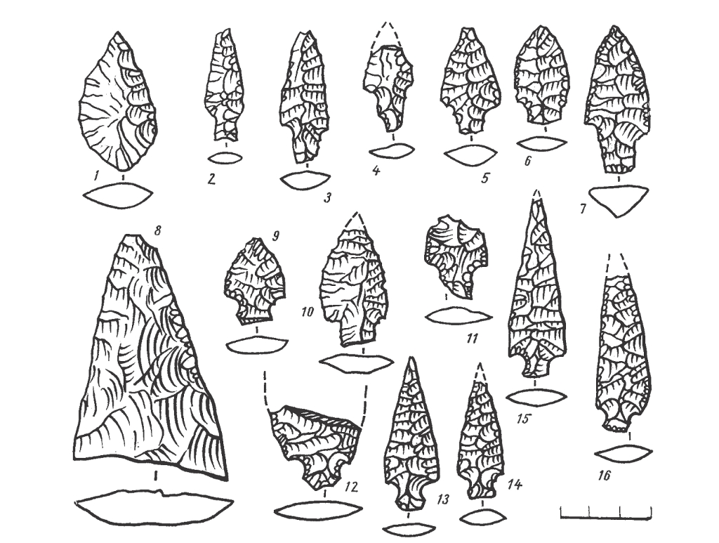 Fig. 3 : Pointes de projectile du niveau VII d’Ushki. Dessins : Dikov 2004 (fig. 3).