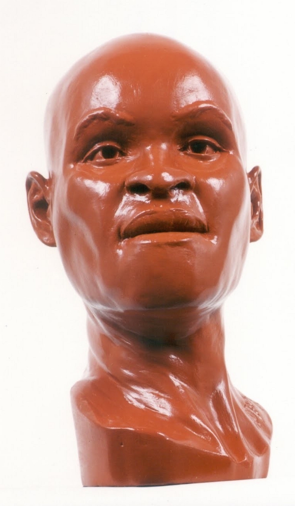 Fig. 2 : Reconstruction hypothétique, par Richard Neave (Université de Manchester), du visage de « Luzia », une femme qui vécut dans le sud-est du Brésil il y a quelque 11 500 ans. Photo : Laboratório de Estudos Evolutivos Humanos, Universidade de São Paulo.
