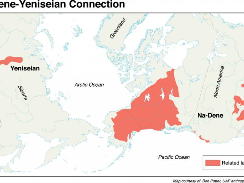 Fig. 1 : Territoires des langues na-dené et ienisseïennes. Carte : Ben Potter, Anthropology Department, University of Alaska Fairbanks.