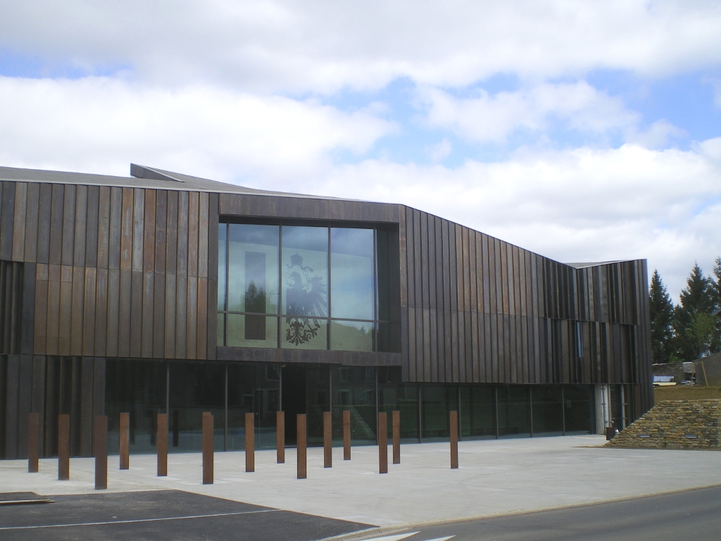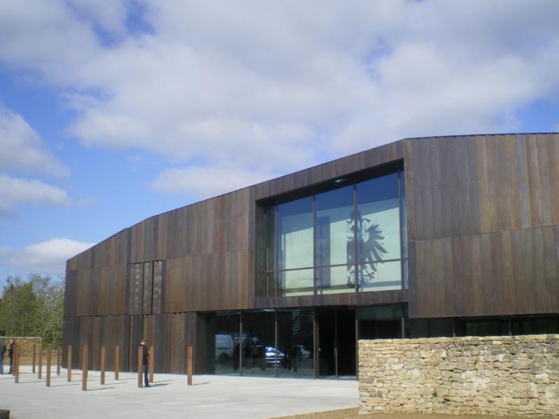 L'architecture du bâtiment évoque la violence du conflit par une façade torturée composée de plaques de laiton patiné, le métal même dont les armes sont faites. Le sentiment dramatique qui saisit d'emblée le visiteur est cependant atténué par l'ouverture du hall sur une paisible campagne. Ainsi sont unies les souffrances de la guerre et l'espoir de la paix.
