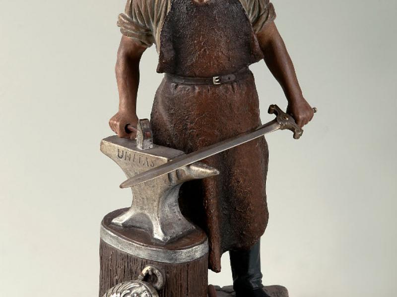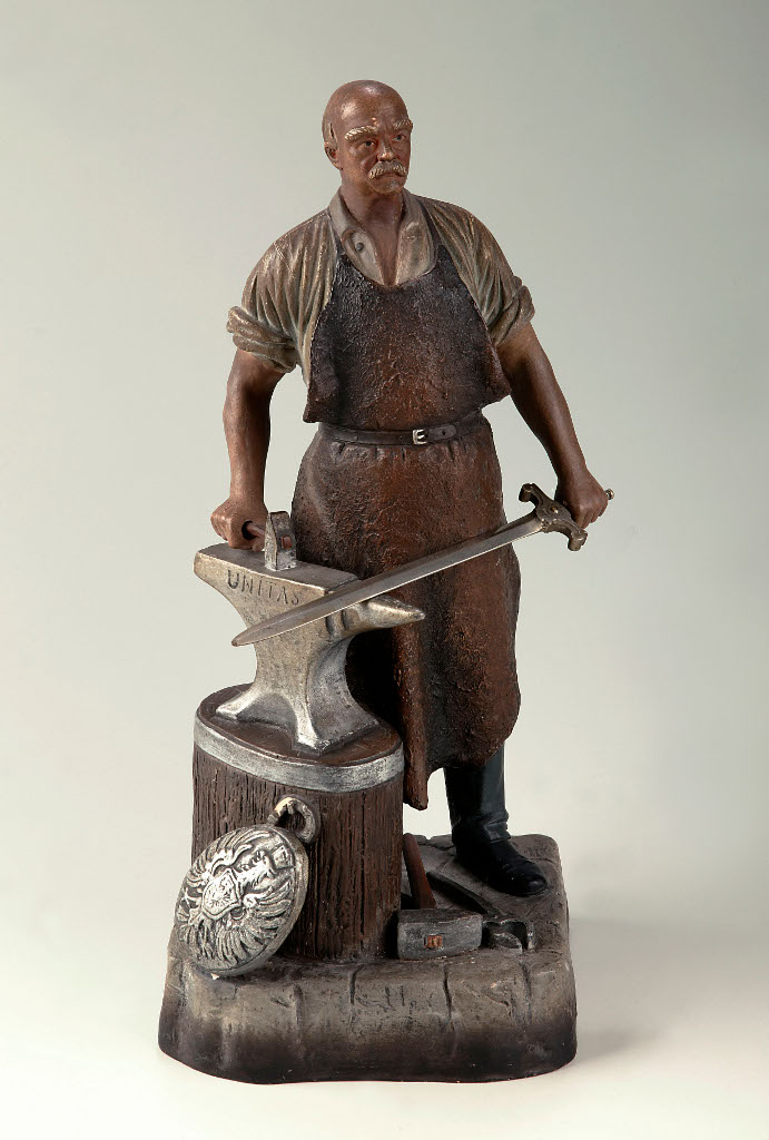 Une des clauses de l'armistice donnait l'Alsace-Lorraine à l'Allemagne. Le Musée de Gravelotte entend jeter un regard objectif sur les 48 ans que dura l'Annexion. Il est vrai que ces territoires formèrent un glacis militaire entre les deux pays. Les habitants purent choisir leur nationalité jusqu'en 1872. Beaucoup, préférant rester français, durent quitter la région, un exil volontaire aggravé deux ans plus tard lorsque l'Allemagne rendit obligatoire le service militaire. Le pouvoir, tenant à intégrer les nouveaux territoires dans l’Empire, les soumit à une germanisation plus ou moins soutenue. On fit venir des Allemands d'ailleurs pour compenser les pertes de population, le protestantisme, religion de l'Empereur, fit un grand retour1... Tout cela était renforcé par une présence militaire considérable et par l'érection de monuments grandioses à la gloire des vainqueurs2.  Et puisque la guerre franco-allemande est la dernière qui ait conduit à l'unité allemande, on célébra Bismarck comme le « forgeron de l’Empire ». C'est ainsi qu'il est représenté sur la statuette exposée au Musée de Gravelotte : il forge l'épée de Germania sur une enclume où figure l'inscription Unitas ; un bouclier aux armes de l'Empire est posé au pied de l'enclume. On produisit en série des copies en plâtre de ce modèle. Les gens pouvaient les acquérir : sans doute était-il bien vu d'exposer chez soi une telle pièce de propagande3. Le sentiment francophile subsista pourtant, et il fut parfois brutalement réprimé.