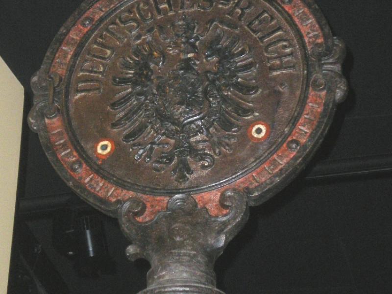 • 3. Les gens se sont débarrassé de ces images de propagande lorsque la région retrouva le giron de la France ; la statuette que nous présentons ici avait échoué dans un dépotoir, où elle fut retrouvée peu après la Seconde guerre mondiale.