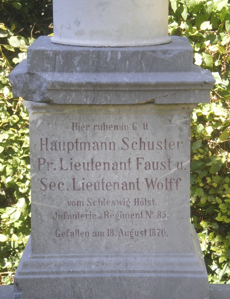 - 3. G. FISCHER, Illustrierte Führer durc die Gedenkhalle von Gravelotte, 1905. Traduit en français, cet ouvrage a été republié en 2005 par Bernard POLLINO et le Club Marangeois d’Histoire locale, sous le titre Guide illustré du Mausolée de Gravelotte. Je tiens à saluer ici ce travail de mémoire exceptionnel où j’ai puisé de nombreux renseignements pour rédiger cette partie de mon article.