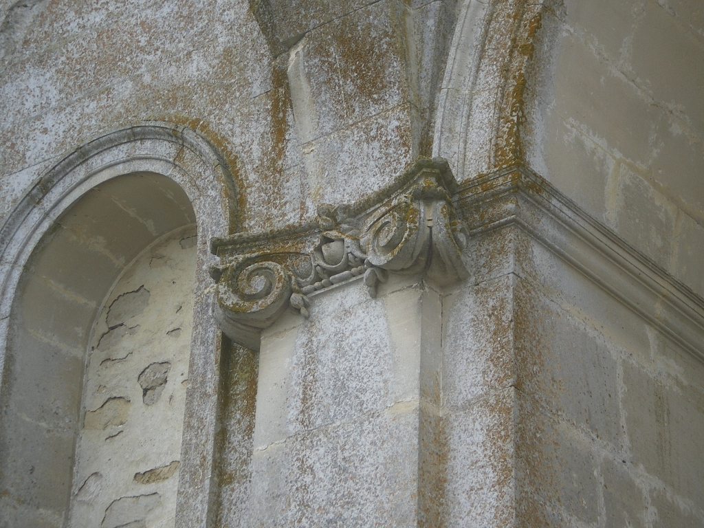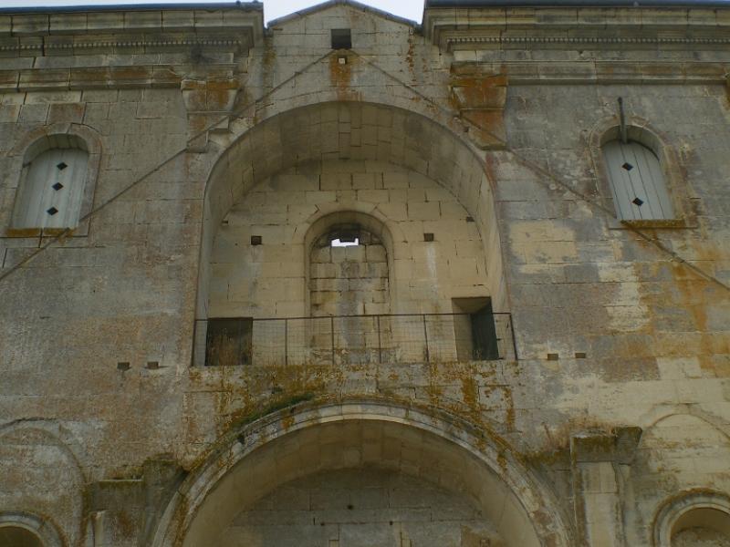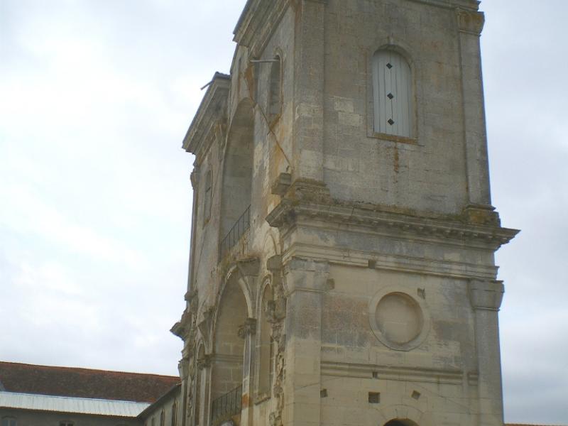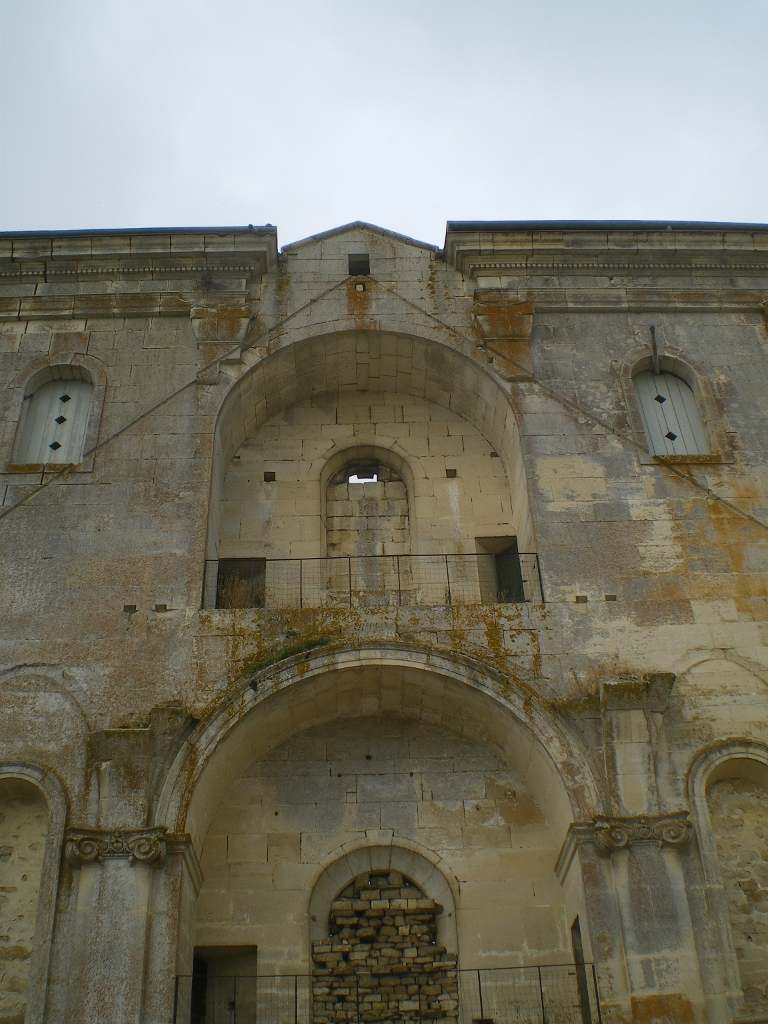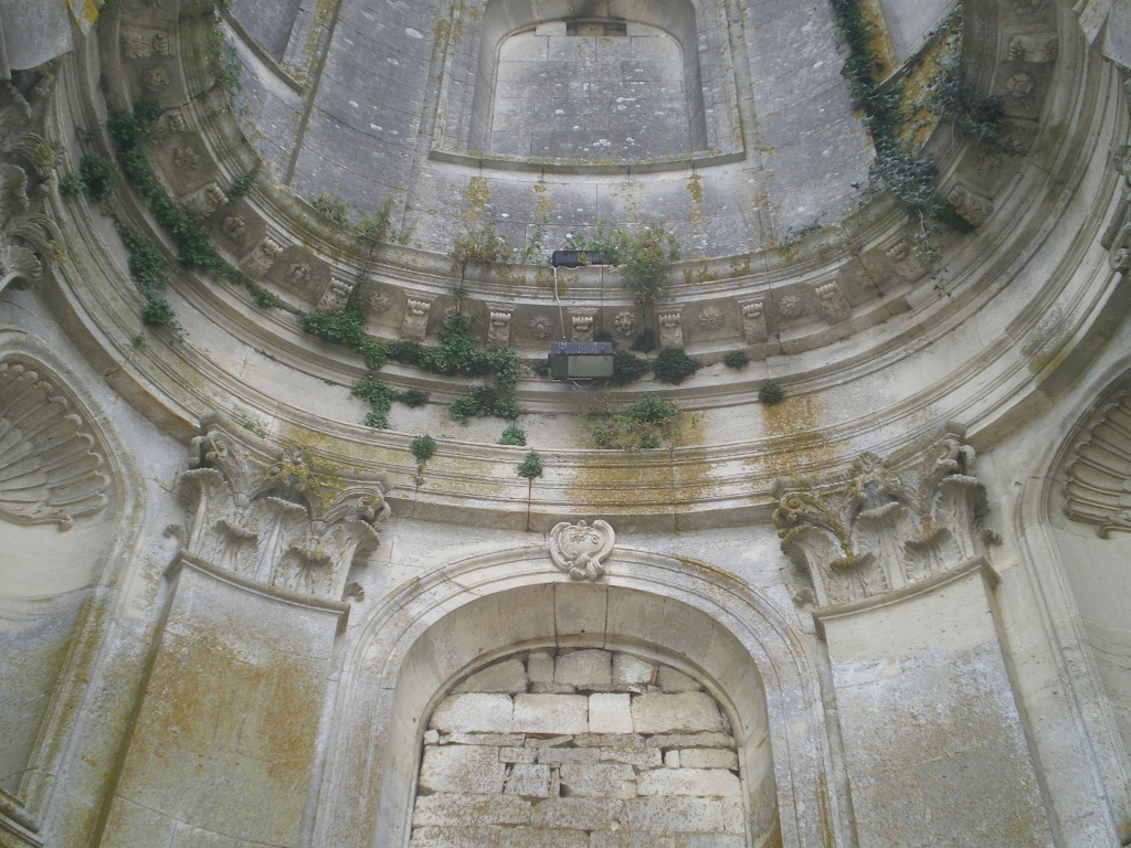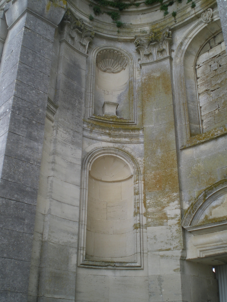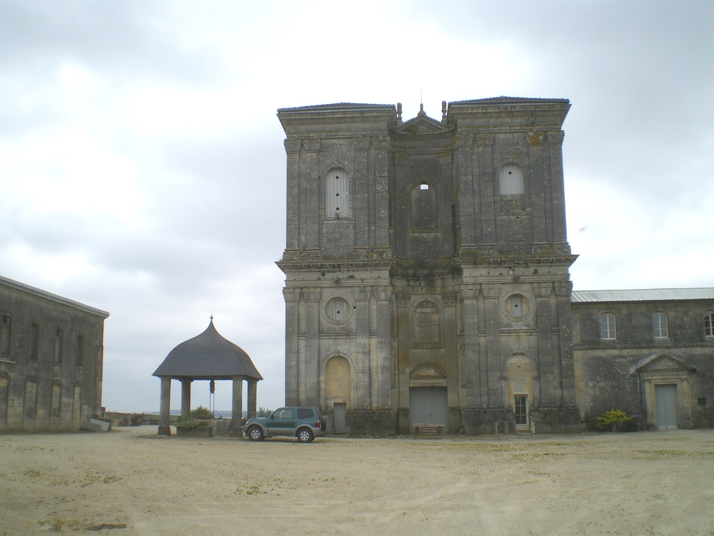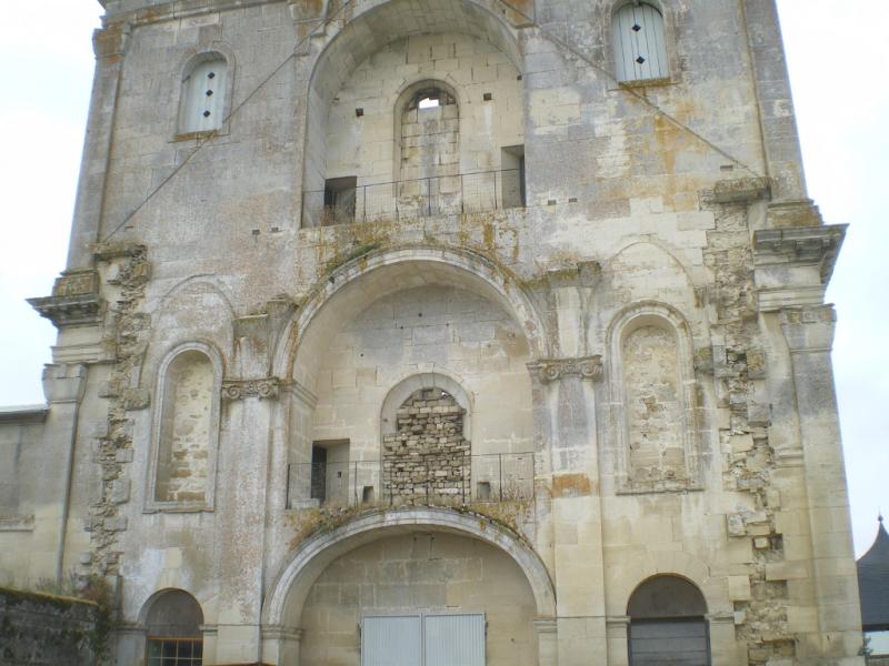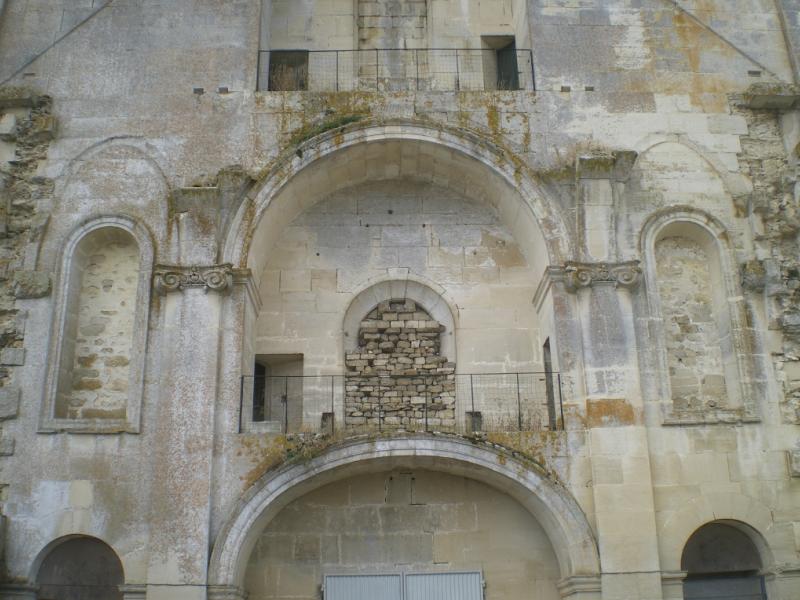 La Révolution démantela la propriété, qui fut vendue par lots à des exploitants agricoles. Les bâtiments furent pillés et en partie démolis au cours du XIXe s. L'église servit de carrière, si bien qu'il n'en reste aujourd'hui que l'imposante façade. Sa composition surprenante comprend deux tours reliées par une partie centrale concave ; l'ensemble fait deux niveaux que sépare un entablement mouluré. L'aspect quelque peu massif est heureusement tempéré par des niches et des pilastres corinthiens2. Autant qu’on puisse en juger, puisque tout a disparu, l’église comprenait une nef et deux bas-côtés. Les supports étaient ornés de chapiteaux ioniques.