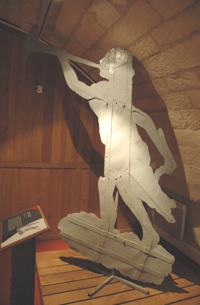On entre actuellement par une de ces deux tourailles. Elle est surmontée d'une girouette dont l'original est à l'intérieur. Au XIXe siècle, les tourailles des malteries arboraient fièrement ces girouettes qui symbolisaient le travail des brasseurs. Celle du Musée Européen de la Bière, réalisée pour la malterie de Stenay en 1849, représente l'Ange de la Renommée, soufflant dans sa trompette et tenant à la main une couronne de laurier.
