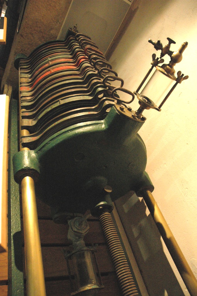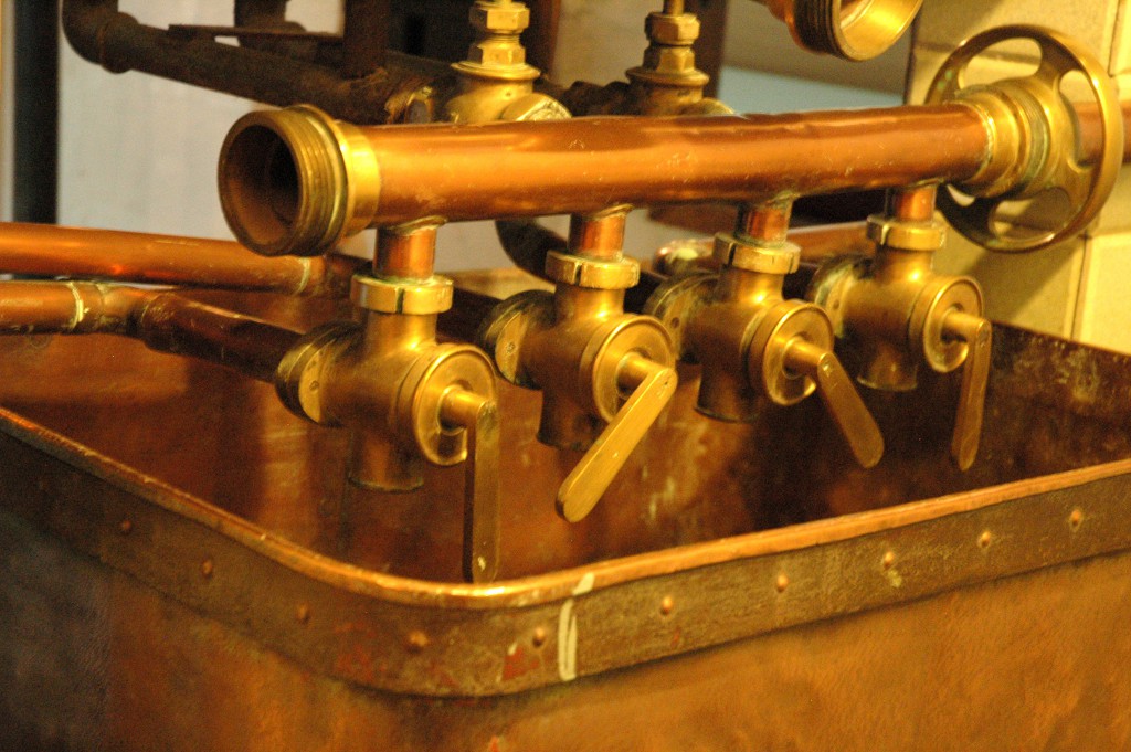 Ainsi, au fil des salles, le visiteur ne se privera pas d'admirer ces machines extraordinaires, dont le musée nous offre un inventaire presque surréaliste : bascule à malt, jauge à tonneau, séchoir à houblon, cuves de brassage mécanisées, cuves à cuire, cuve-filtre, cuves matière, bacs refroidisseurs, réfrigérants baudelot, échangeur à plaques, appareils de soutirage en fûts et en bouteilles, machines de lavage et de mise en bouteille, de capsulage, d'étiquetage, de soutirage et de distribution à la pression... Il se laissera fasciner par la mécanique des engrenages, des roues dentées et des pistons, par l'éclat rutilant du cuivre et du laiton des cuves, des tuyaux et de la robinetterie... Tout un univers qui, de l'usine, aboutit au débit de boissons. Celui-ci est évoqué par la reconstitution d'un café et par des dispositifs de tirage de la bière à la pression. Et l'on découvre avec surprise le premier distributeur automatique de bière, qui fut inventé en 1889 pour l'Exposition Universelle de Paris.