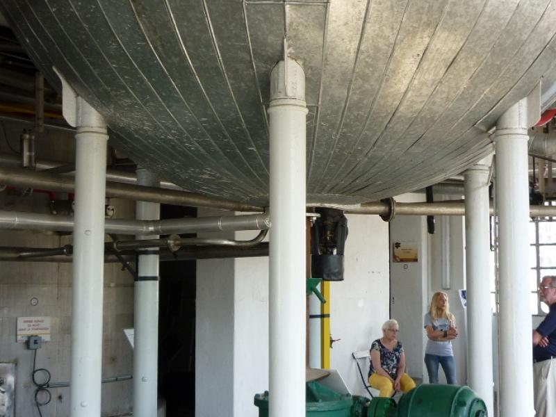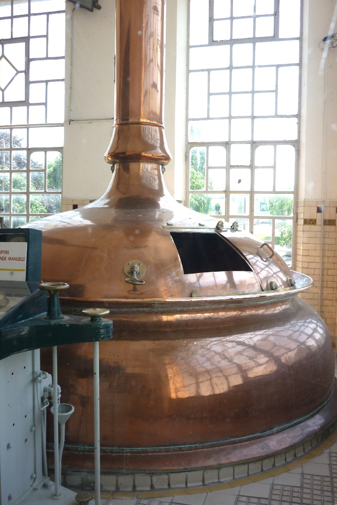 La visite se poursuit par la tour de brassage. Aujourd'hui classé, le bâtiment est un remarquable exemple de l'architecture industrielle Art-déco. On y a restitué une malterie-brasserie du XVIIIe s. ainsi qu'un laboratoire de brasserie, où les paillasses et le matériel sont d'origine, qui marque pour ainsi dire l'aboutissement de l'évolution de la brasserie. On se souviendra que Pasteur a poursuivi ses travaux sur les levures non loin de là. La salle de brassage est particulièrement spectaculaire, avec ses immenses verrières et ses trois grandes cuves en cuivre flamboyant.
