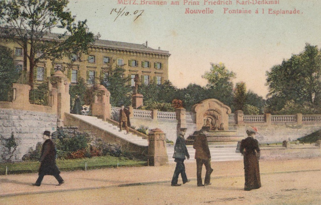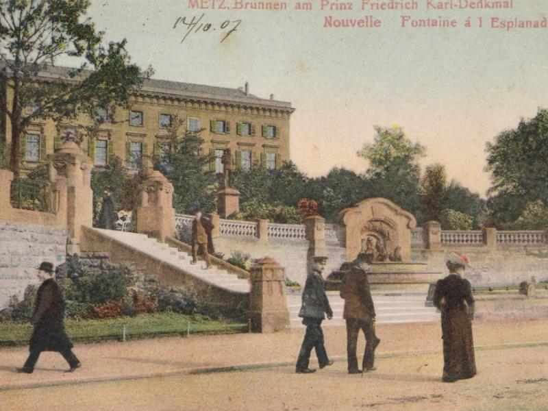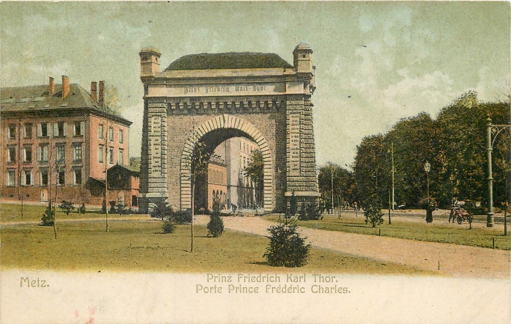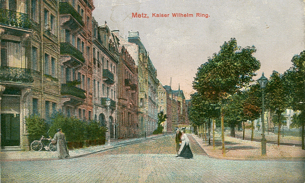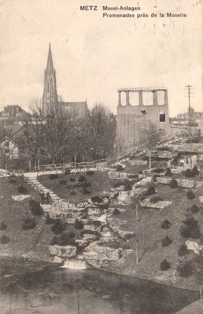 Cette diversité concourrait à faire de Metz une ville « pittoresque » en accord avec les théories de Sitte. Elle ne pouvait se concevoir sans espaces arborés, jardins et parcs, ni réminiscences historiques. Ainsi le pestigieux Kaiser Wilhelm Ring6, un des éléments majeurs de ce plan, se pare-t-il sur toute sa longueur de rangées d'arbres et de parterres fleuris. La Tour Camoufle et la Porte des Allemands rappelèrent les remparts médiévaux qui avaient défendu la ville. Tout comme la Porte Serpenoise, qui fut à cette époque complètement transformée pour prendre l’aspect d’une sorte d’arc de triomphe telle qu’on la connaît aujourd’hui ; elle fut alors rebaptisée Prinz Friedrich Karl Thor (Porte Prince Frédéric Charles). L'emplacement de la Citadelle était en grande partie occupé par le parc de l'Esplanade. Durant l'Annexion, la terrasse en fut dotée d'une balustrade panoramique qui dominait des fontaines à rocaille et le jardin en pente vers la Moselle. Cela donna aux Messins une superbe promenade au charme romantique.