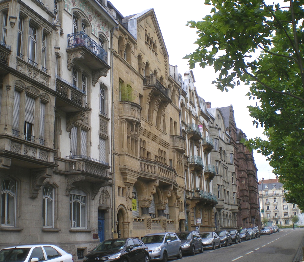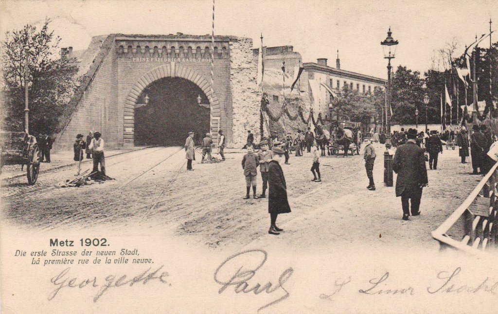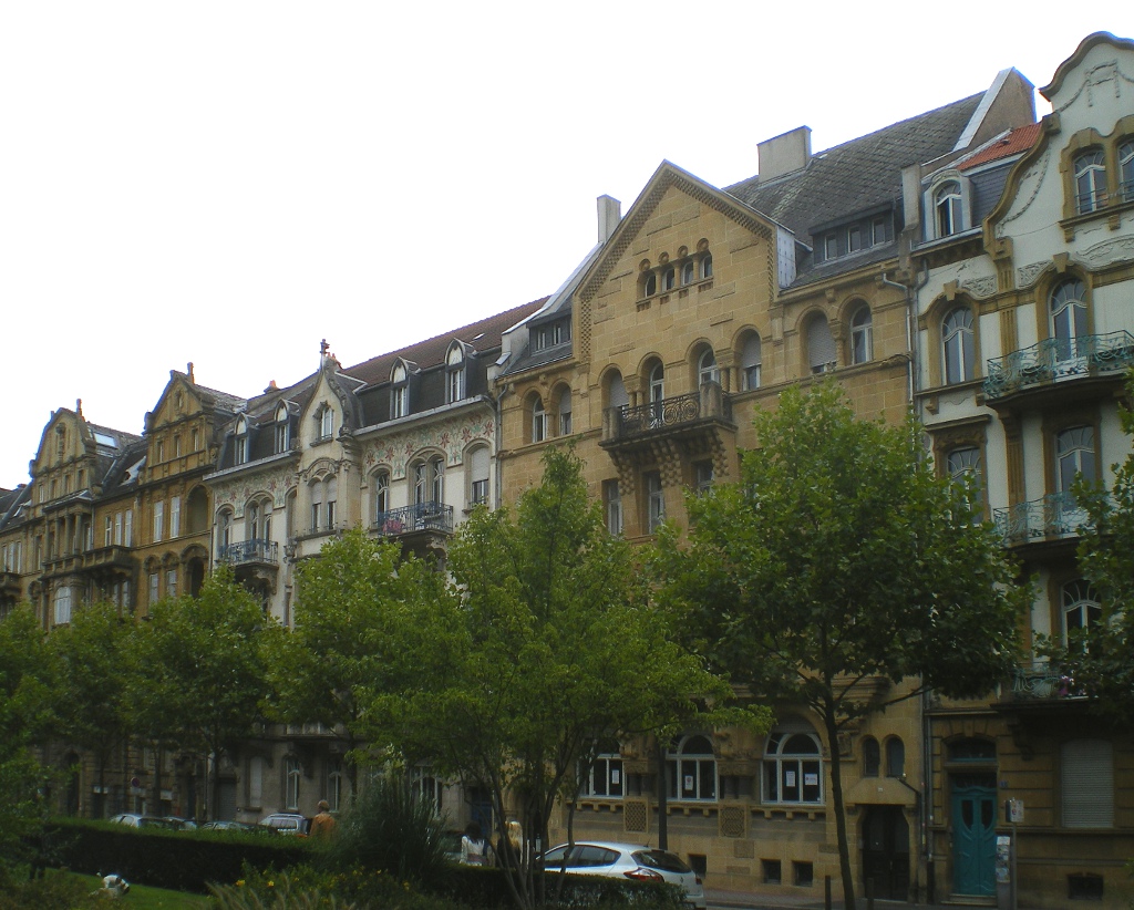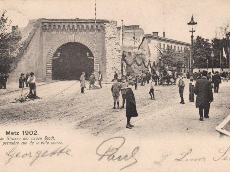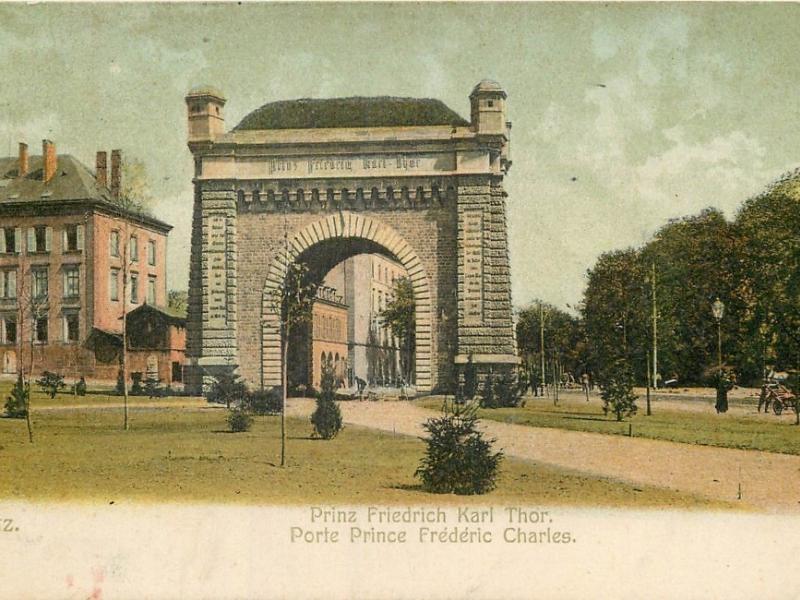Cette diversité concourrait à faire de Metz une ville « pittoresque » en accord avec les théories de Sitte. Elle ne pouvait se concevoir sans espaces arborés, jardins et parcs, ni réminiscences historiques. Ainsi le pestigieux Kaiser Wilhelm Ring6, un des éléments majeurs de ce plan, se pare-t-il sur toute sa longueur de rangées d'arbres et de parterres fleuris. La Tour Camoufle et la Porte des Allemands rappelèrent les remparts médiévaux qui avaient défendu la ville. Tout comme la Porte Serpenoise, qui fut à cette époque complètement transformée pour prendre l’aspect d’une sorte d’arc de triomphe telle qu’on la connaît aujourd’hui ; elle fut alors rebaptisée Prinz Friedrich Karl Thor (Porte Prince Frédéric Charles). L'emplacement de la Citadelle était en grande partie occupé par le parc de l'Esplanade. Durant l'Annexion, la terrasse en fut dotée d'une balustrade panoramique qui dominait des fontaines à rocaille et le jardin en pente vers la Moselle. Cela donna aux Messins une superbe promenade au charme romantique.
