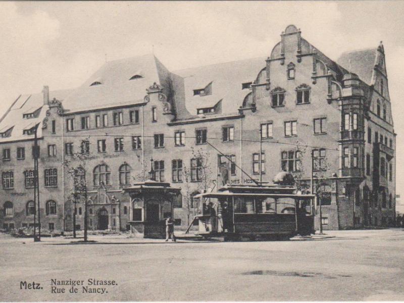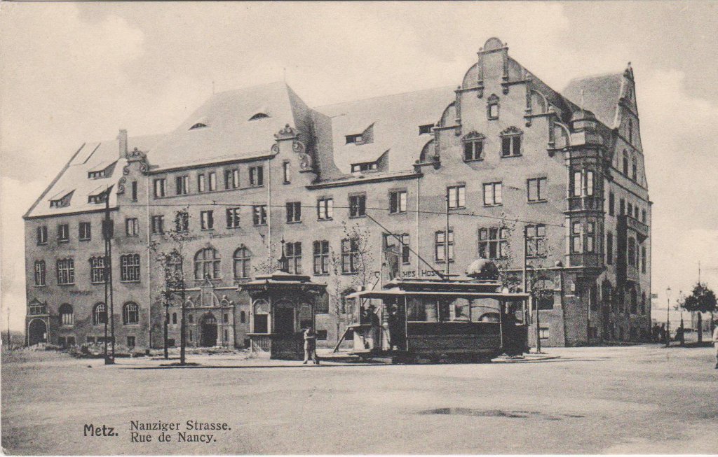 Cela ne devait pas occulter cependant les critères de germanisation voulus par l'Empereur, ni les impératifs stratégiques sous-jacents. Metz, auparavant l’une des plus grandes places fortes de la France, conservait comme on l'a vu ce rôle pour l'empire allemand. Aussi la fonction de la gare, élément essentiel de la nouvelle ville, était-elle avant tout militaire5 : sa conception comprenait, sous le bâtiment réservé aux voyageurs, de vastes niveaux souterrains qui pouvaient accueillir d’importants effectifs militaires, des chevaux et leur fourrage, de l’armement etc. De même, les grands axes de circulation de ce nouveau quartier, en rayonnant de la gare, étaient-ils prévus pour faciliter le déploiement de ces troupes vers la ville elle-même et ses faubourgs à l’ouest et au sud.