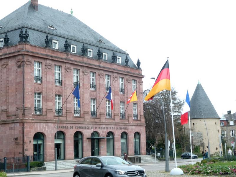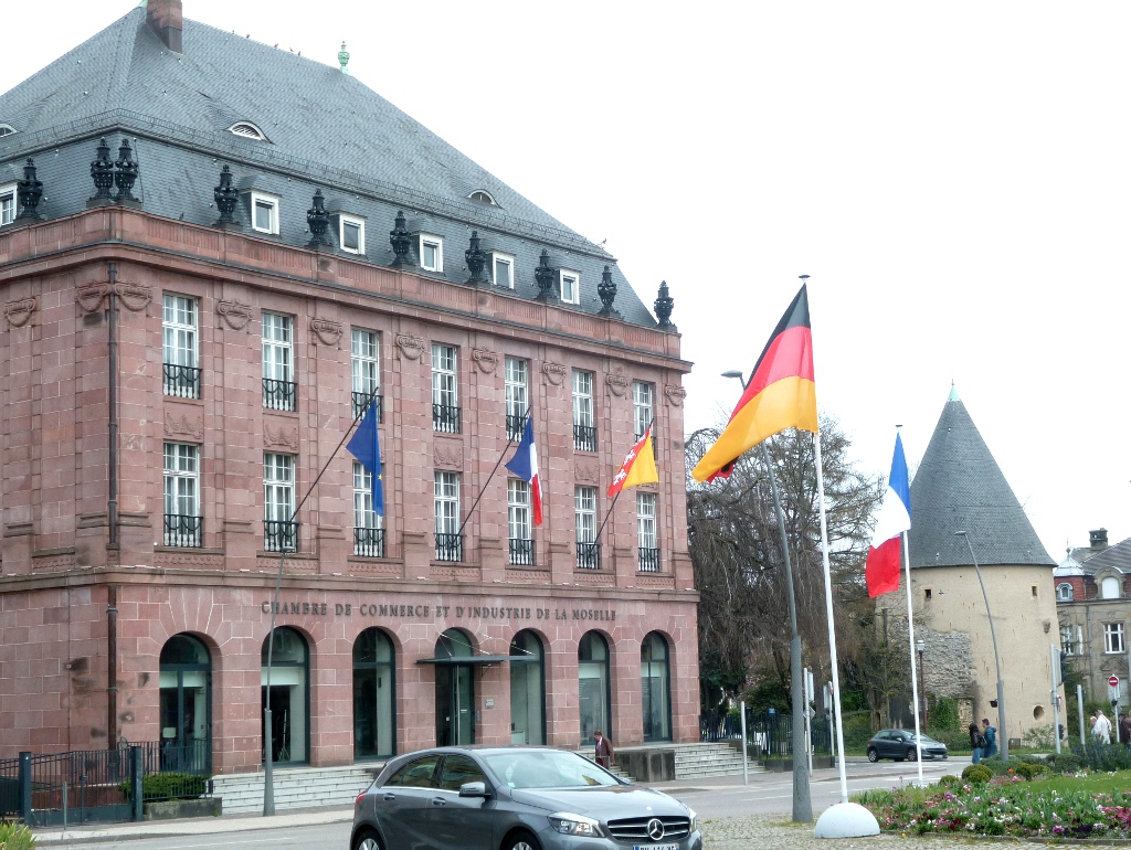 - 5. La gare était en effet l’aboutissement de la Kanonenbahn Berlin-Metz, ligne de chemin de fer stratégique entre les deux villes. Metz était désormais un avant-poste allemand, situé à seulement 350 km de Paris et proche de la nouvelle frontière ; l’Allemagne devait donc se protéger contre une attaque française et pouvoir déployer rapidement ses troupes entre Moselle et Meuse sur une ligne fortifiée constituée d’un rideau défensif de forts détachés, la Moselstellung.