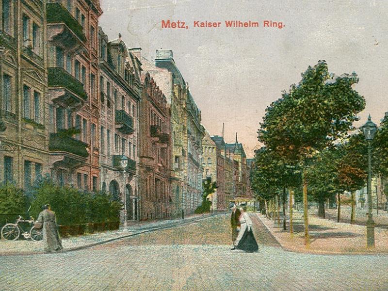 Guillaume II, qui monta sur le trône en 1888, prêta aux plaintes de la municipalité messine une oreille bien plus favorable que son aïeul. De par sa position à la tête de l'empire et du Reichsland d'Alsace-Lorraine, il était le seul à pouvoir s'opposer aux militaires, et il n'hésita pas à le faire. Sans pour autant nier son importance stratégique, il désirait donner à Metz, ville de langue et de culture françaises, un aspect définitivement germanique. Au tournant du siècle se met ainsi en place un ambitieux programme architectural, auquel l'Empereur participe activement, qui vise à faire de Metz une vitrine du Reich. En 1898, on entreprend la destruction des remparts de la ville au sud et à l'est, ce qui libère de vastes terrains1. Cette « germanisation par la pierre », pourrait-on dire, concerne avant tout le Quartier impérial, la Ville Nouvelle (Neue Stadt), un quadrilatère2 délimité par les avenues Joffre et Foch, le talus des voies de chemin de fer (rues Vauban, Lafayette et Clovis), la rue Charles Abel et les avenues de Nancy et de Lattre de Tassigny.