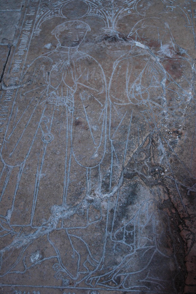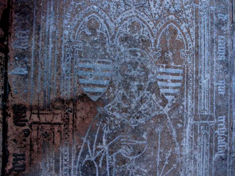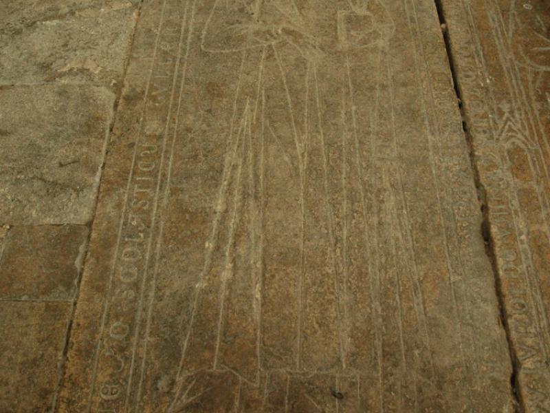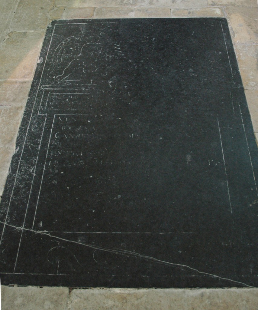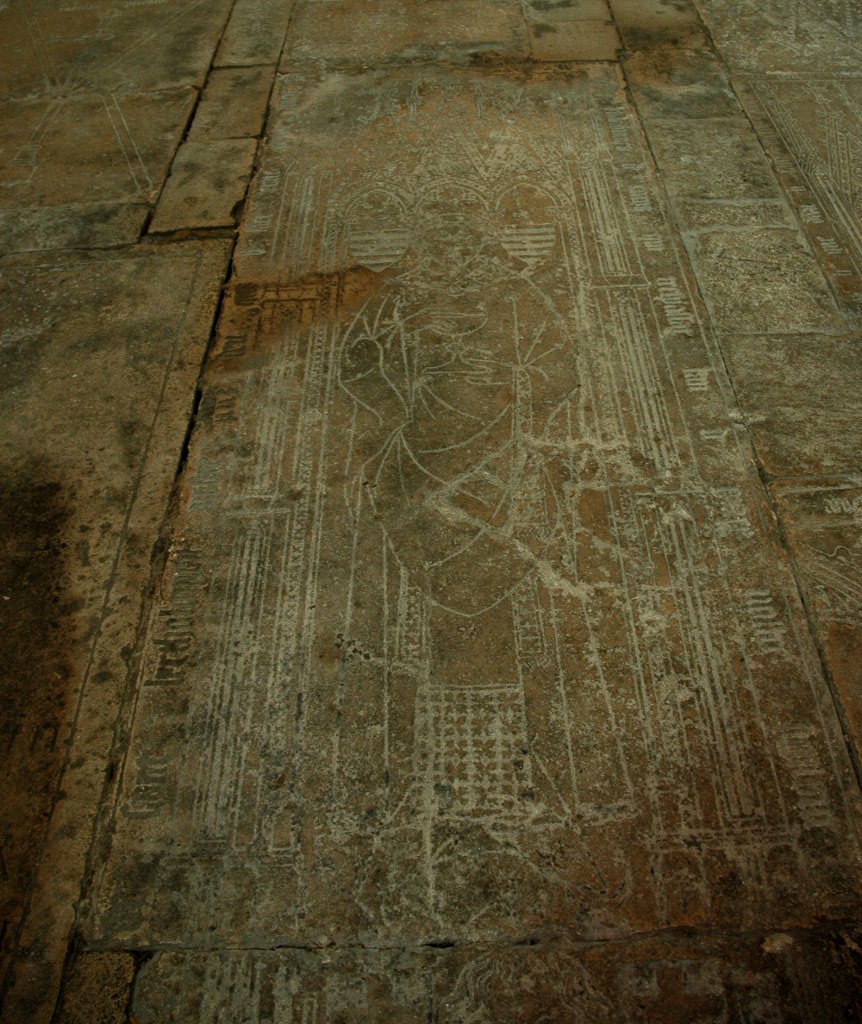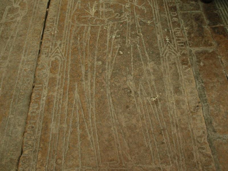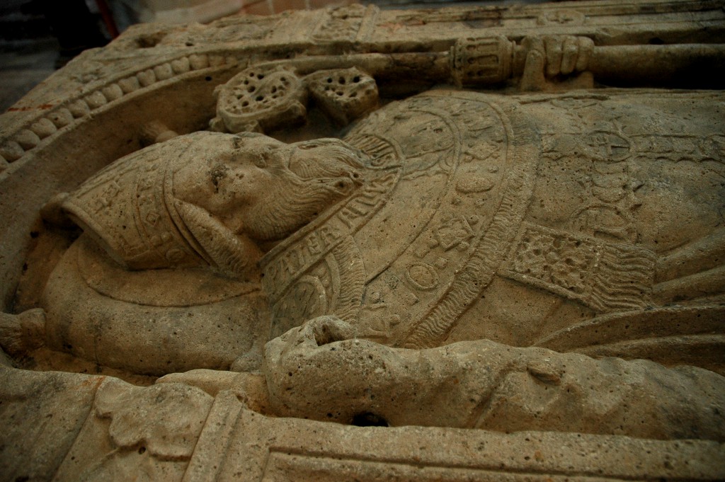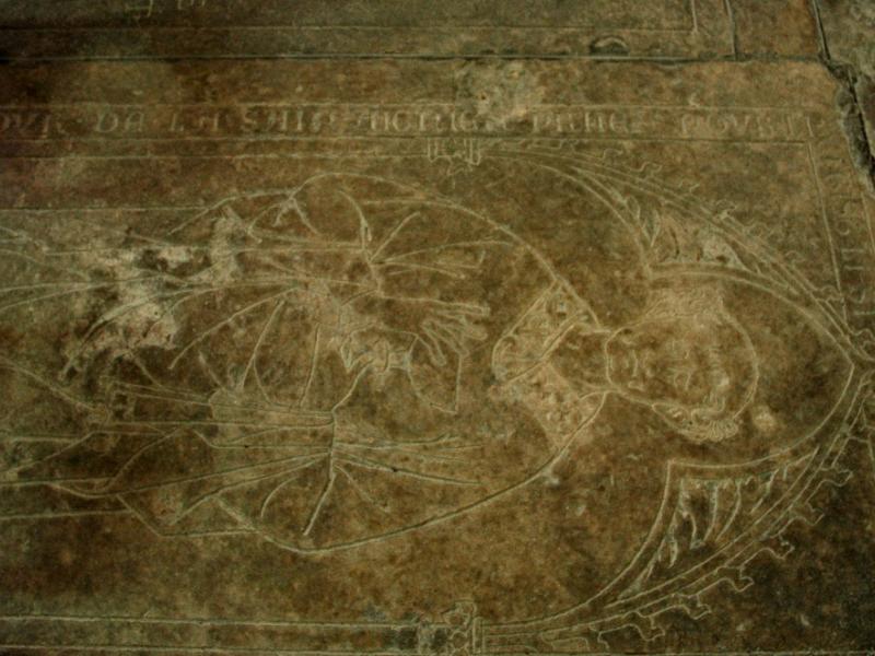 • 3. Les dalles funéraires constituent une grande partie du sol du transept et du cloître, où l’on en voit aussi encastrées dans les murs. Seules quelques-unes sont des épitaphes d’évêques ; la plupart sont celles de personnes dont la position justifiait qu’ils soient enterrés à cet emplacement prestigieux mais qui ont aujourd’hui disparu des mémoires.