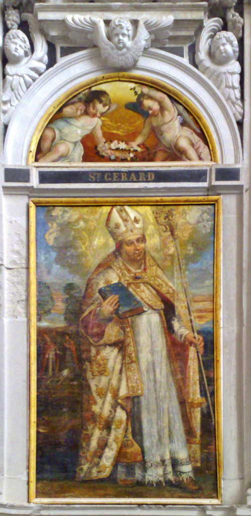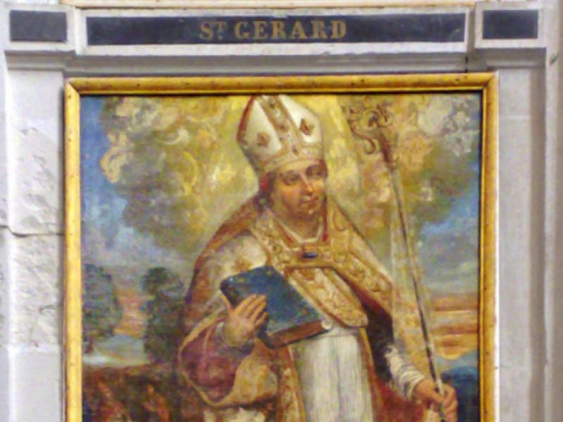 Saint Gérard (963-994), le 33e évêque de Toul, succède à Gauzelin de 963 à sa mort. Canonisé en 1051, saint Gérard est fêté 23 avril, mais aussi le 21 octobre, jour anniversaire de la translation de ses reliques. Il est certainement le plus éminent des évêques de Toul. Né à Cologne en 935 dans une famille de haute noblesse, Gérard reçoit une excellente éducation. Il se sent appelé au sacerdoce alors qu'il est encore élève du chapitre de la cathédrale. Devenu prêtre, il tient la fonction de cellérier du chapitre et prêche dans les paroisses de la ville tout en poursuivant ses études. En 962, à la mort de l'évêque Gauzelin, le diocèse de Toul fait appel à l'archevêque de Cologne Brunon, frère de l'empereur Othon Ier et duc de Lotharingie, afin de pourvoir le siège épiscopal. Le chapitre de la cathédrale de Cologne lui propose le jeune chanoine Gérard. Celui-ci, après avoir d'abord refusé, n'accepte qu'à l'insistance de l'archevêque ; il est sacré le 29 mars 963 par l'archevêque de Trèves. Le nouvel évêque de Toul se montra d'une entière fidélité envers les empereurs du Saint-Empire et soutint l'action de l'archevêque Brunon, qui cherchait à uniformiser les cultes lotharingiens. Aussi les relations de l'évêque de Toul avec les nobles et les prélats de la région, comme l'évêque de Metz Thierry Ier, l'évêque de Langres Achard ou le duc de Haute-Lotharingie Frédéric Ier, furent-elles difficiles malgré l'appui des souverains ottoniens.