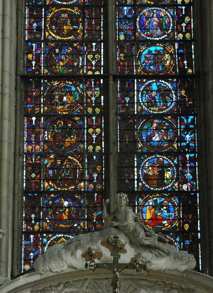 - 2. Cette clarté est encore accentuée par les vitraux : à St-Gengoult, toutes les baies de la nef sont pourvues de verre blanc, comme la partie supérieure des verrières du transept.