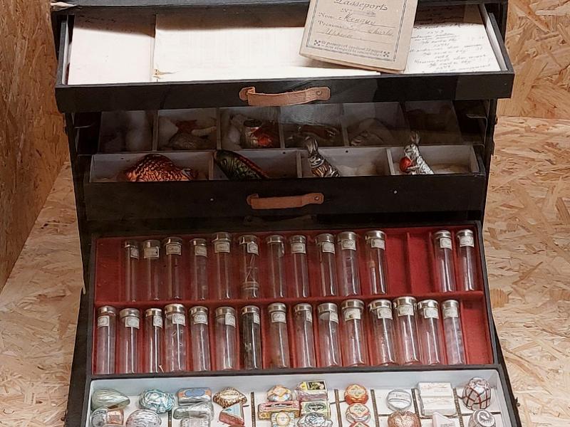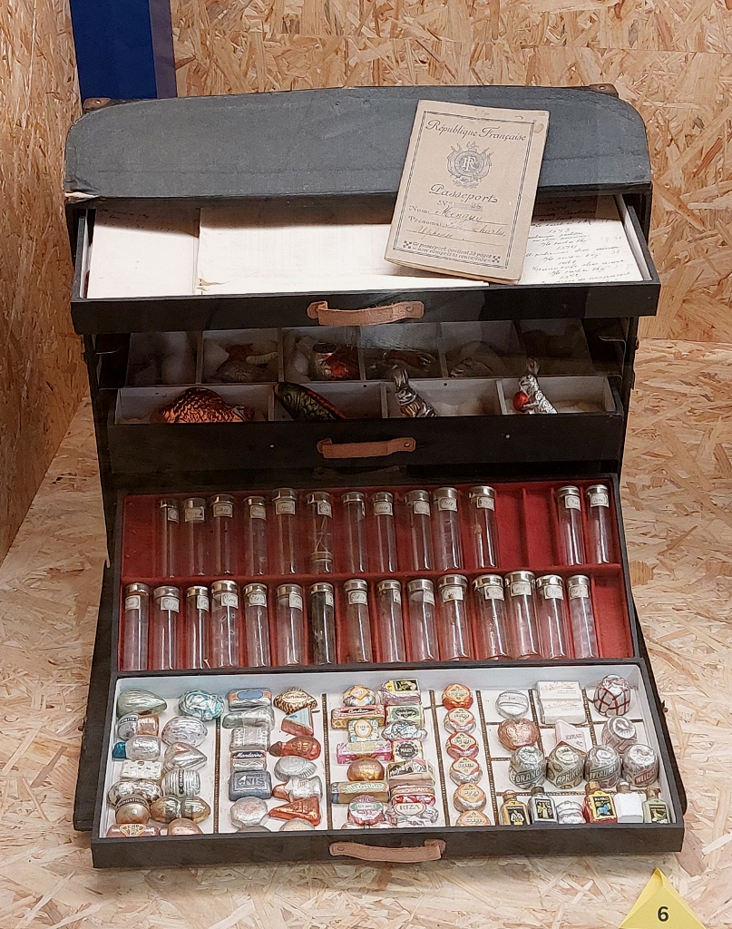 On se déplace aussi pour raisons professionnelles. À chaque métier son bagage. Les ouvriers ont leur boîte-à-outils, les voyageurs de commerce leur « marmotte » conçue pour les échantillons qu’ils proposent. Le musée en expose plusieurs, de représentants en chocolat, en horlogerie, en bijouterie, en pharmacie… L’une d’elles est composée d’éléments de cuisine en miniature. Même les grands hommes d’Église disposent de leur « chapelle » de voyage.