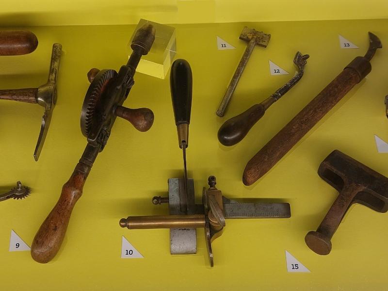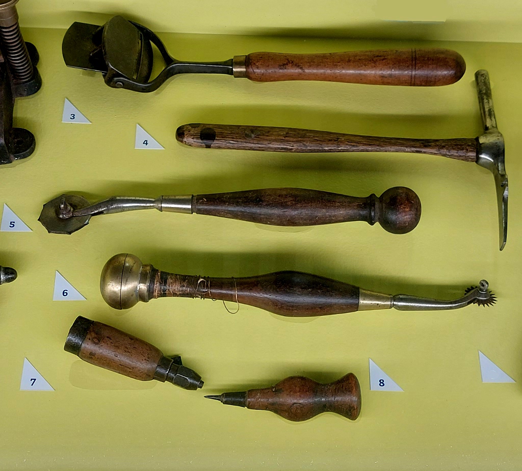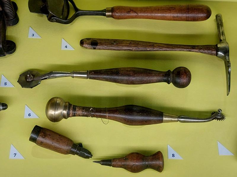 Si l’organisation du voyage a fait naître des métiers distinctifs tels que le courrier, la profession de malletier-layetier s’est consacrée à la conception des malles et des bagages ; elle est à l’origine de leurs transformations et de leurs améliorations1. Le Musée du Bagage a reconstitué un atelier de malletier, avec son établi et ses outils spécifiques, ainsi qu’un tableau qui réunit des éléments de « bijouterie », comme on appelait les ferrures qui renforçaient les points faibles de la malle.