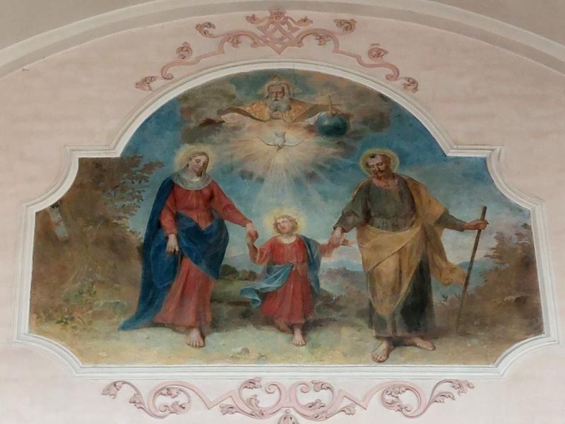 À ces grands tableaux il faut ajouter celui de la Sainte Famille à la tribune du transept nord. Dans une image touchante, Jésus donne la main à ses parents, Marie à gauche et Joseph à droite. La scène est surmontée par une représentation de Dieu le Père.