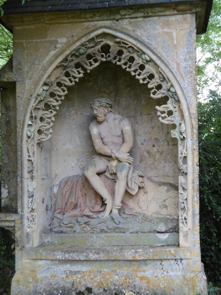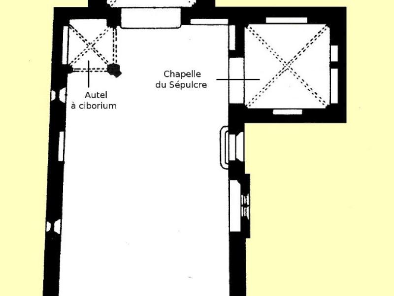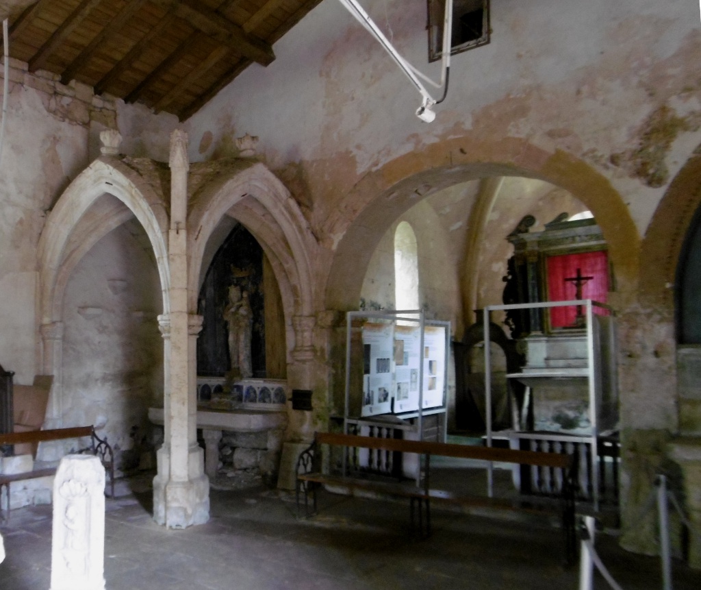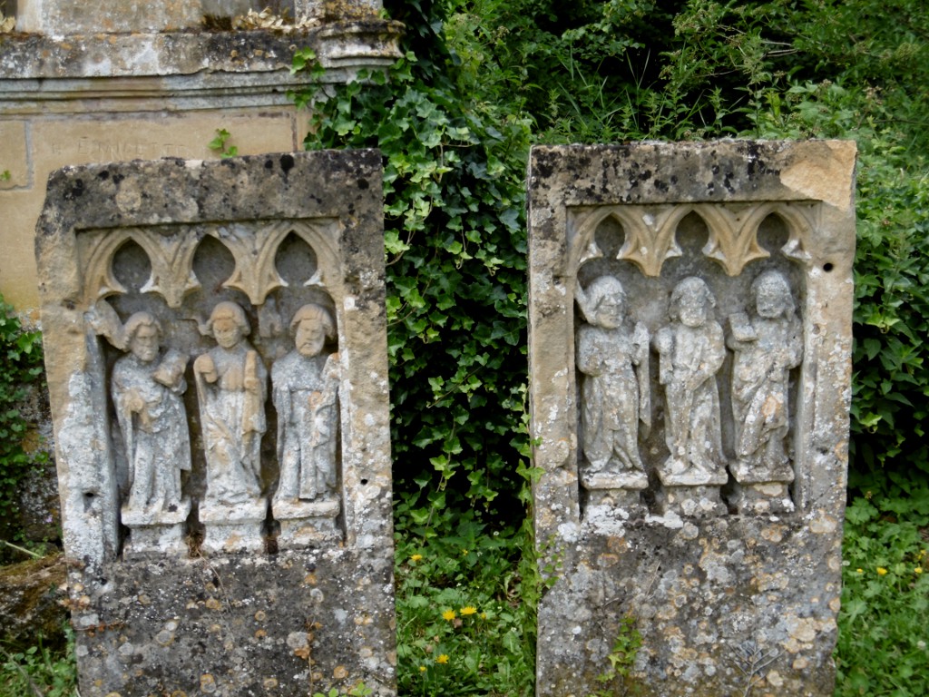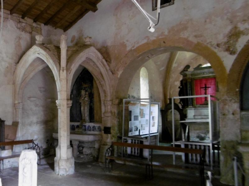 Après avoir perdu son statut paroissial, cette église prit un caractère plus funéraire. Au XIVe s., la nef s’agrandit de la chapelle du St-Sépulcre, fondée par le curé de Marville Hues († 1345), qui s’y fit inhumer ; son gisant le représente comme un homme jeune aux traits sereins. À l’entrée de cette extension se dresse la pierre tombale d’Isabelle de Musset († 1506) ; son effigie, encadrée des saints Jérôme, Christophe, Gilles et Michel, est accompagnée de ses armoiries et de celles de son époux. Dans le sol de l’église est encastrée la dalle de Marguerite de Dandelin († 1569) et de sa fille Jeanne de Hezecques († 1575).