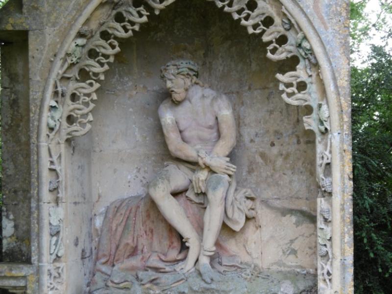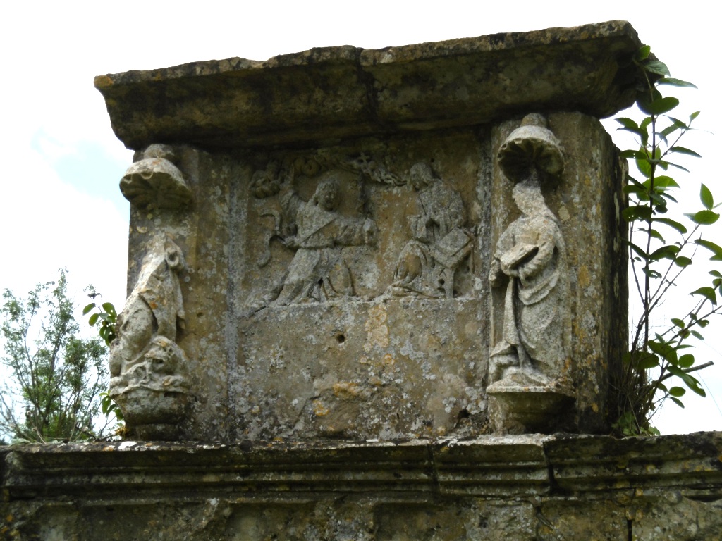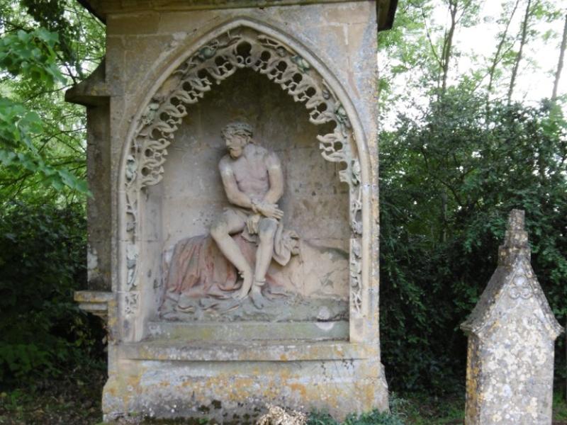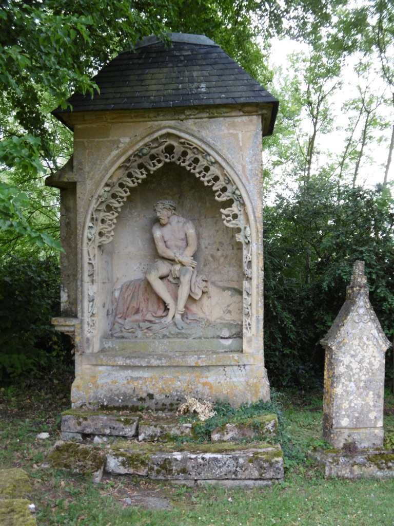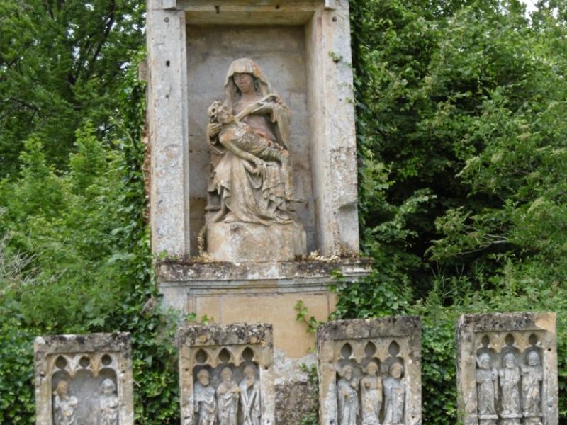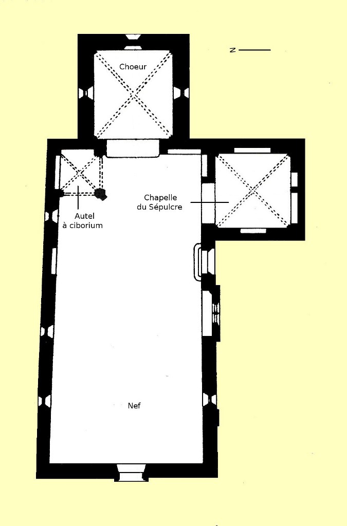Après avoir perdu son statut paroissial, cette église prit un caractère plus funéraire. Au XIVe s., la nef s’agrandit de la chapelle du St-Sépulcre, fondée par le curé de Marville Hues († 1345), qui s’y fit inhumer ; son gisant le représente comme un homme jeune aux traits sereins. À l’entrée de cette extension se dresse la pierre tombale d’Isabelle de Musset († 1506) ; son effigie, encadrée des saints Jérôme, Christophe, Gilles et Michel, est accompagnée de ses armoiries et de celles de son époux. Dans le sol de l’église est encastrée la dalle de Marguerite de Dandelin († 1569) et de sa fille Jeanne de Hezecques († 1575).