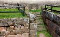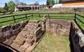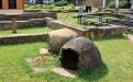 Les maisons avaient des plans similaires et se distinguaient surtout par leur largeur et leurs aménagements intérieurs. En effet, sans aller jusqu’au bain privé1, les habitations de Schwarzenacker font montre d’un certain confort, comme on s’en rendra compte au cours de la visite : canalisations, chauffage par hypocauste et conduits de ventilation dans les murs, jardin, fours et cheminées… Comme à Bliesbruck, elles ont une cave avec niches et soupiraux. Certaines étaient ornées de fresques murales de belle qualité. La particularité de ces habitations, toutefois, tient à un dispositif pour la conservation des aliments : un peu partout, des coffres à rafraichir2 en grès étaient encastrés dans le sol ; pourvus d’un couvercle en bois à charnières, ils servaient de « chambre froide » et pouvaient contenir deux ou trois amphores.